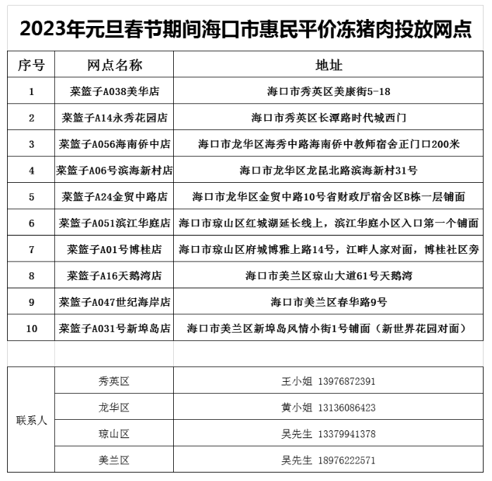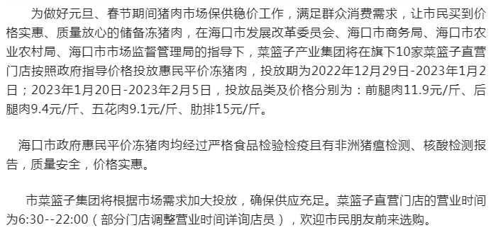 海口市政府惠民平價(jià)凍豬肉啟動投放